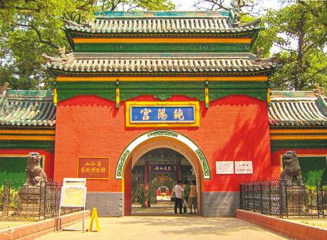 纯阳宫位于山西太原五一广场西北角,为全国重点文物保护单位。喧嚣闹市中,这座古老道观闹中取静,殿院深深,自带些许神秘色彩,总吸引着众多路人的好奇目光。这个五进院落里,珍贵文物众多,尤以全国唯一的九宫八卦院建筑、武则天称帝时期的涅槃变相碑和唐代常阳天尊像这“纯阳三绝”著称。
